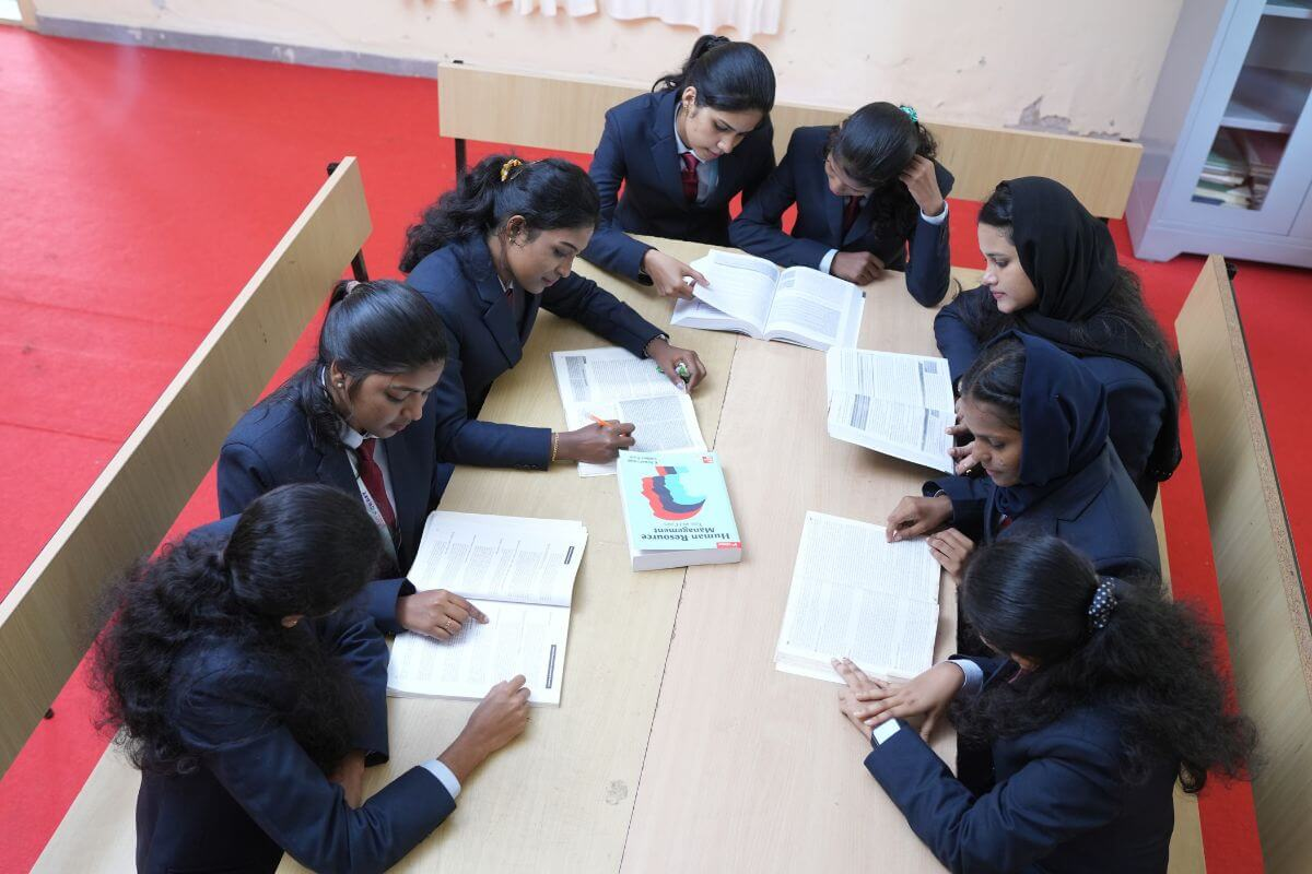 OOur well-equipped library serves as a vibrant knowledge center, stocked with textbooks, case studies, and reference materials across general management and specialized subjects. It also supports skill-building and group learning, featuring quiet reading zones alongside collaborative discussion areas.